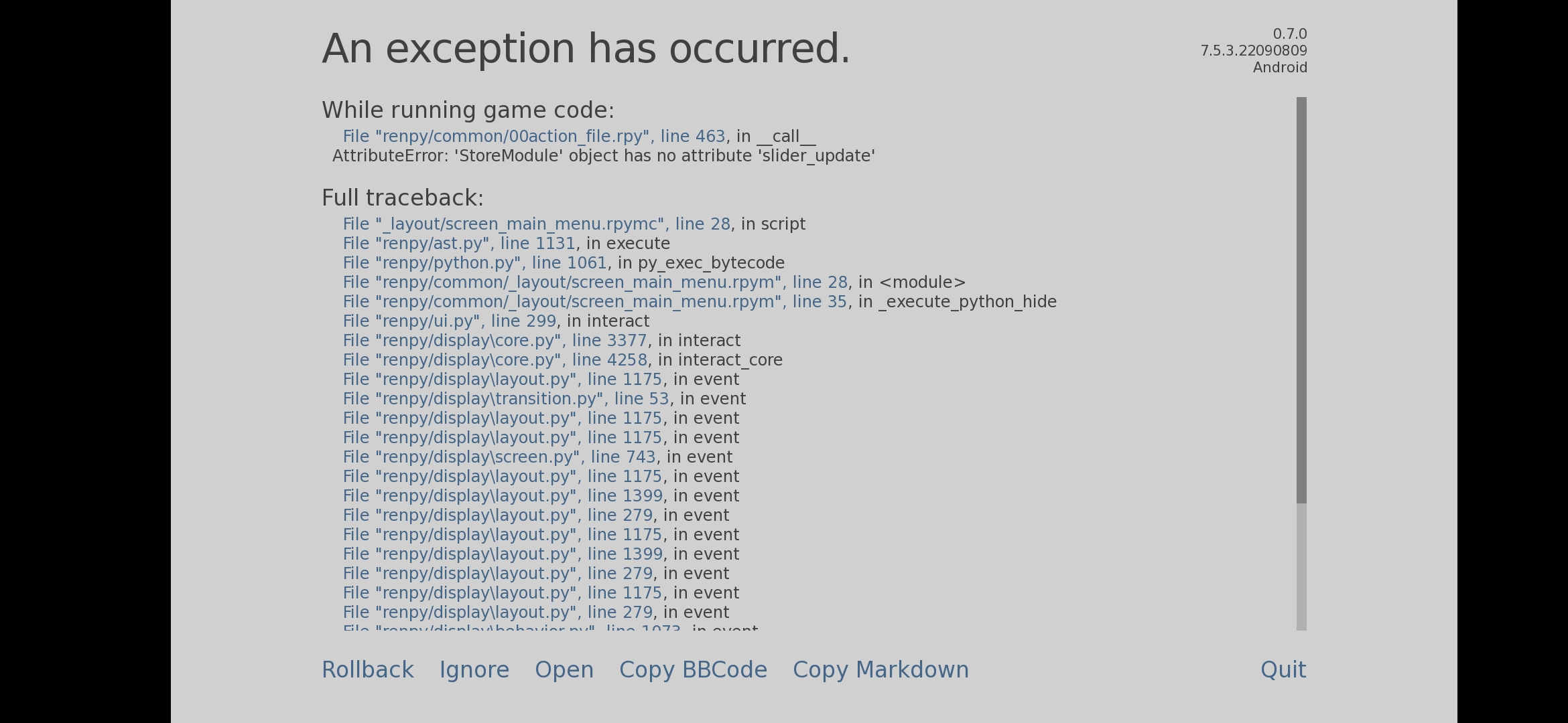 Android port for the game The Nexus. It includes my usual settings + the former WT Mod from me. I updated it again to the actual game version, but be aware I don’t add choice hints in the lately added free roam game parts (not my preferred game style). New with v0.6: a replay/gallery unlocker Edit Oct. 28, 2025: the Mod/port should be compatible to the bugfix game version v0.6.1